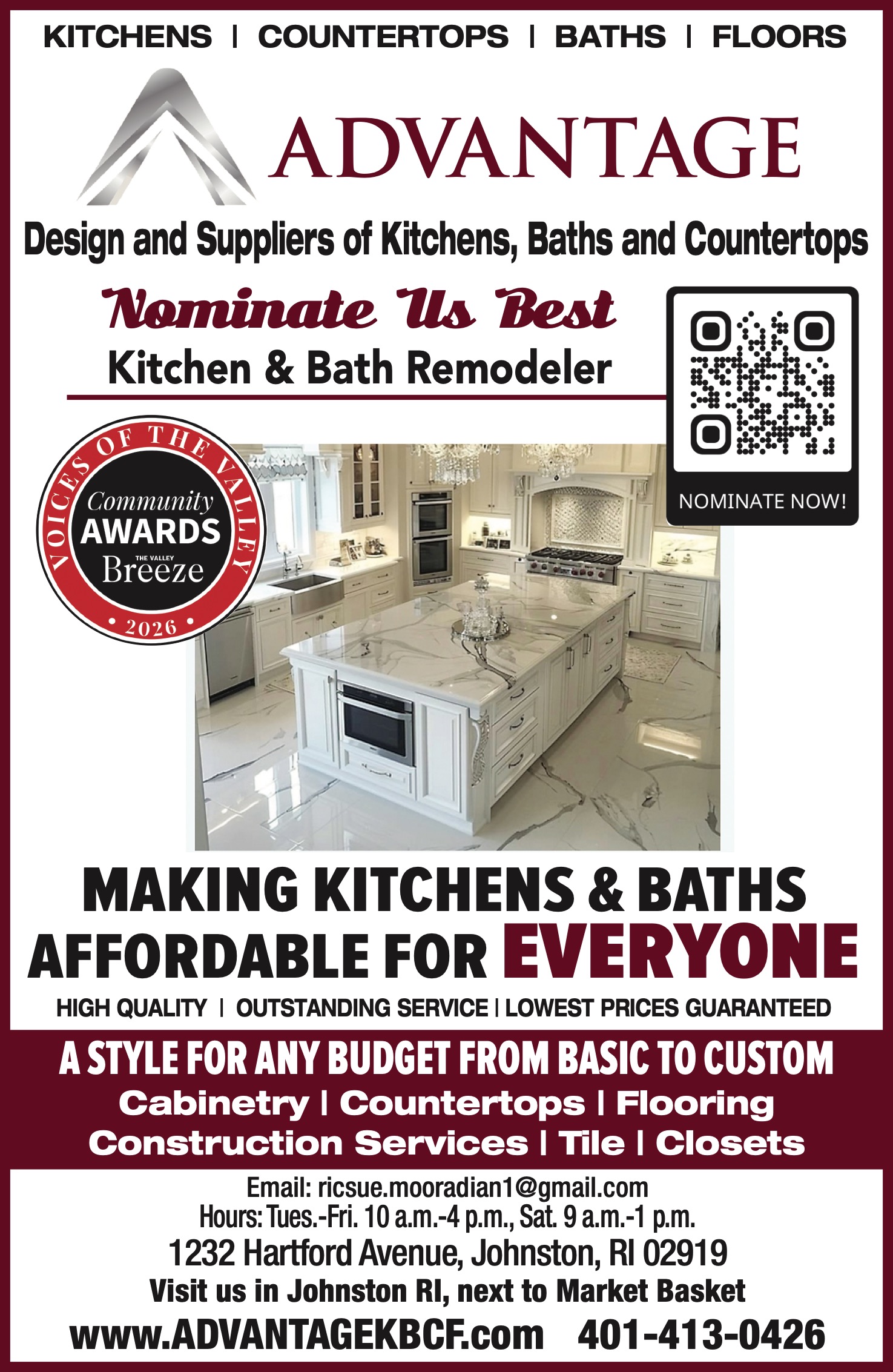 Visit us in Johnston RI, next to Market Basket www.ADVANTAGEKBCF.com 401-413-0426