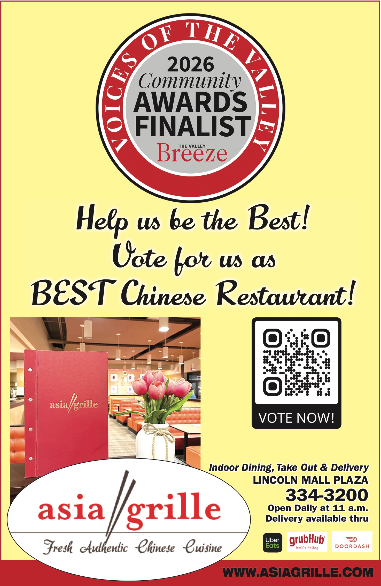 Asia Grille Help us be the Best! Vote for us as BEST Chinese Restaurant!
