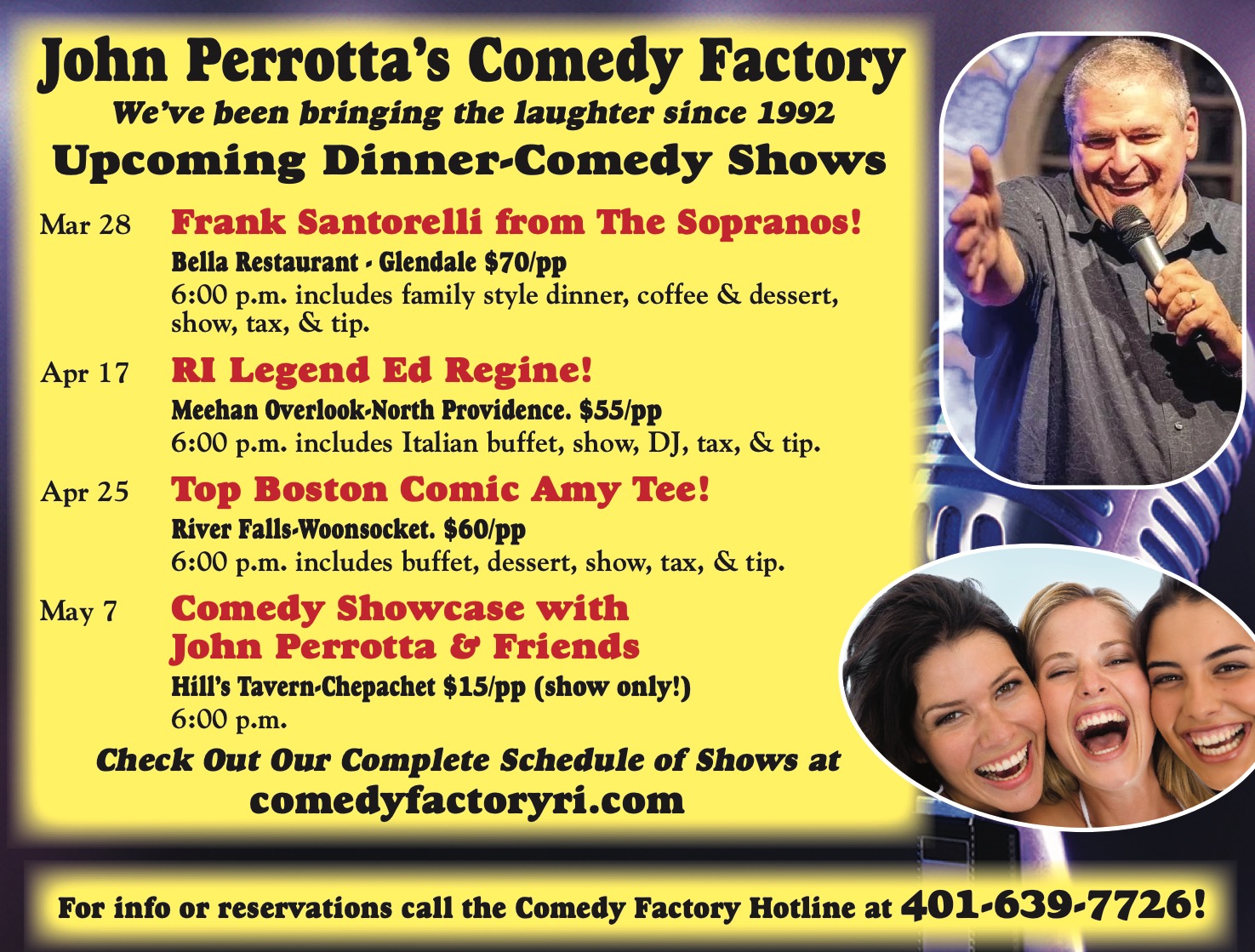 For info or reservations call the Comedy Factory Hotline at 401-639-7726!