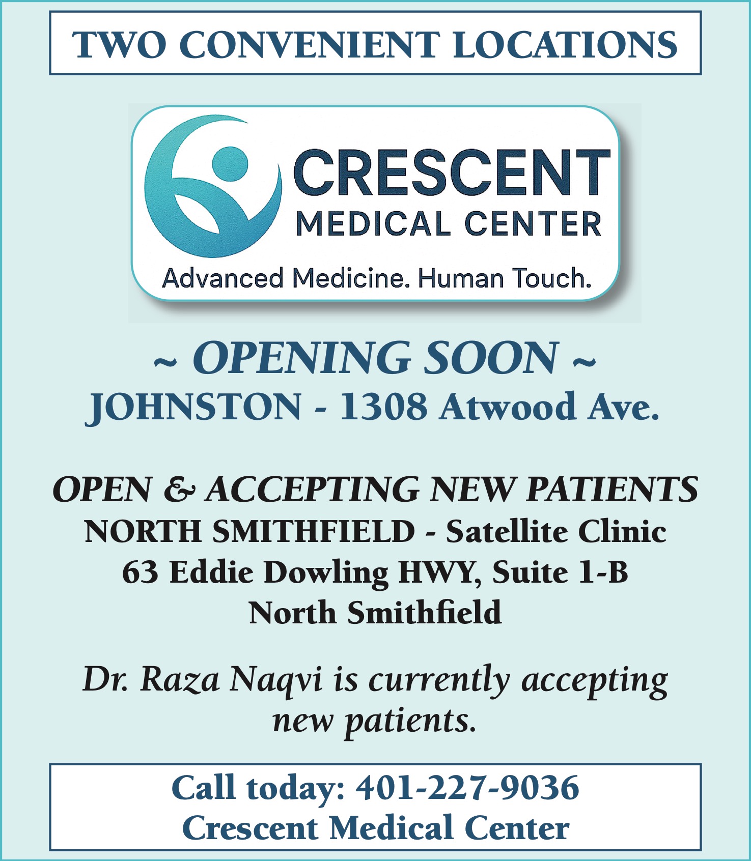 Call today: 401-227-9036 Crescent Medical Center