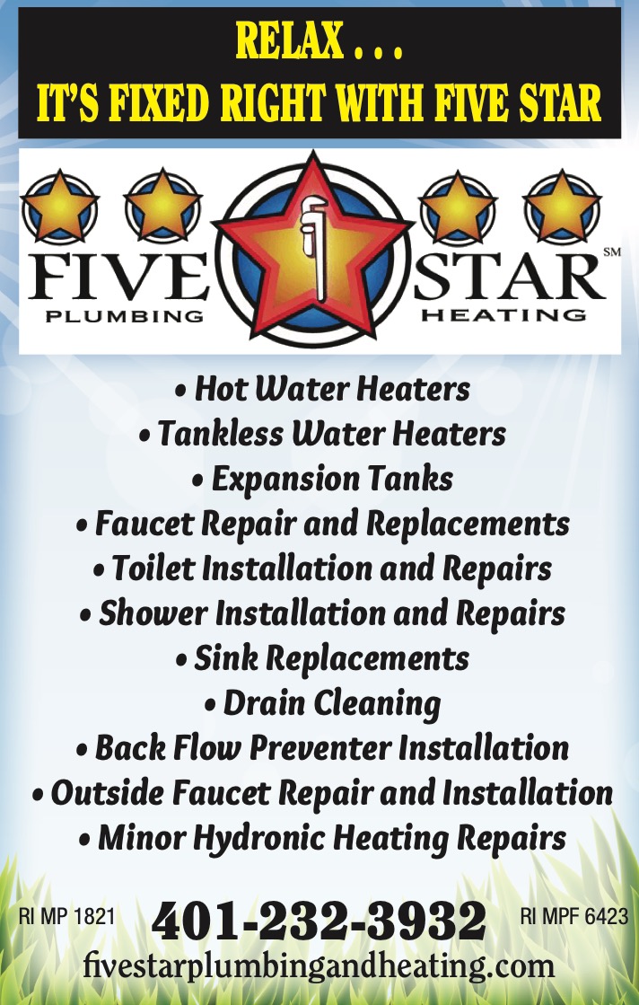RI MP 1821 401-232-3932 RI MPF 6423 fivestarplumbingandheating.com