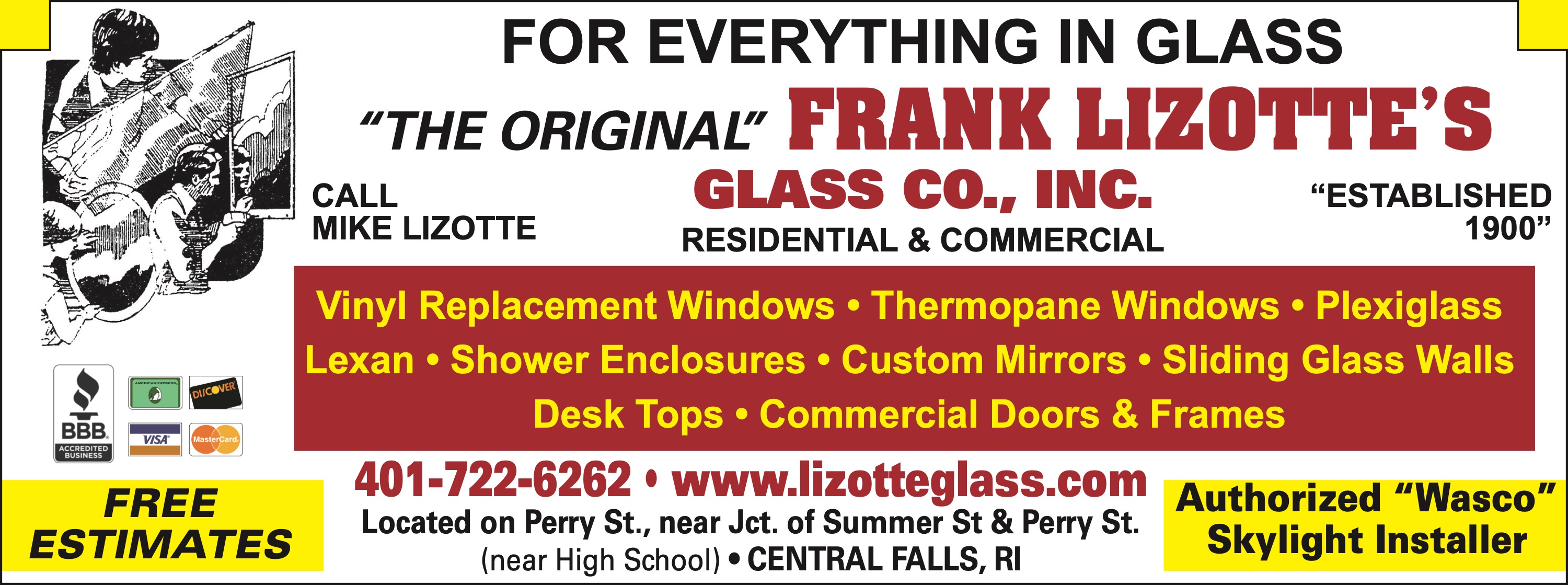 Frank Lizotte Glass Vinyl Replacement Windows Thermopane Windows Plexiglass Lexan Shower Enclosures Custom Mirrors Sliding Glass Walls Desk Tops Commercial Doors & Frames