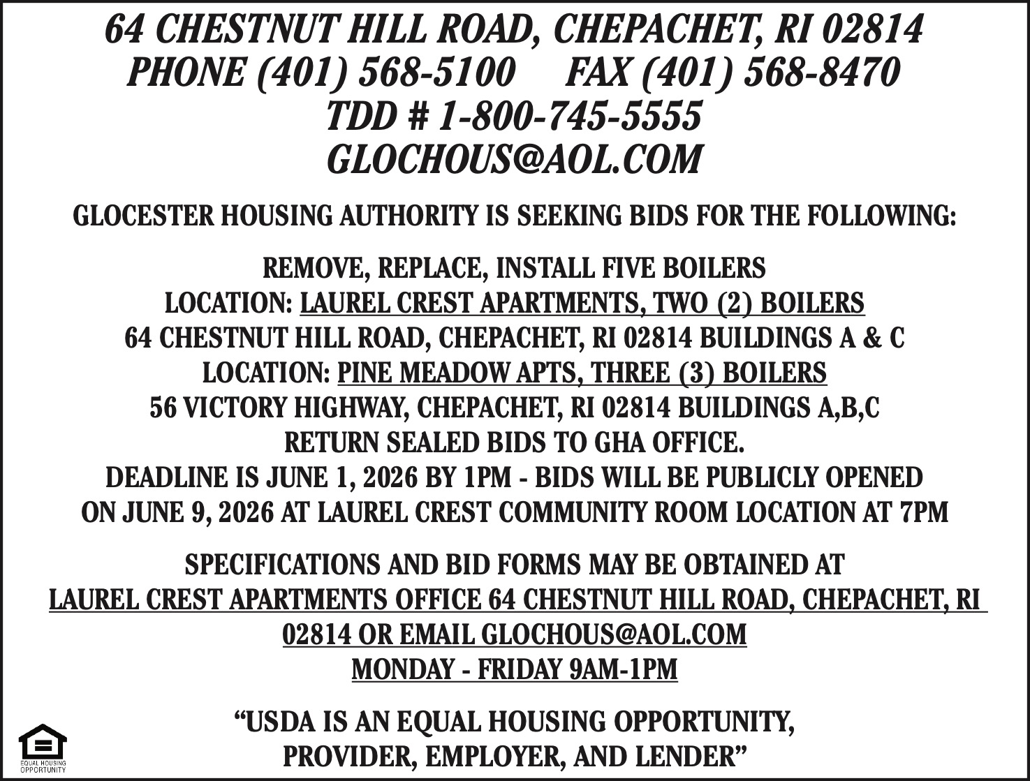 GLOCESTER HOUSING AUTHORITY IS SEEKING BIDS FOR THE FOLLOWING: