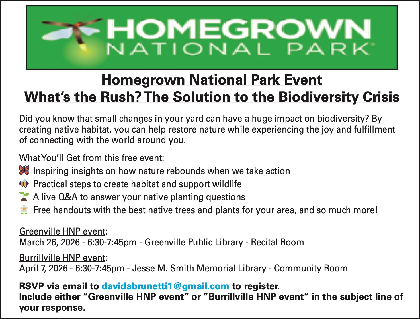 Include either Greenville HNP event or Burrillville HNP event in the subject line of your response.