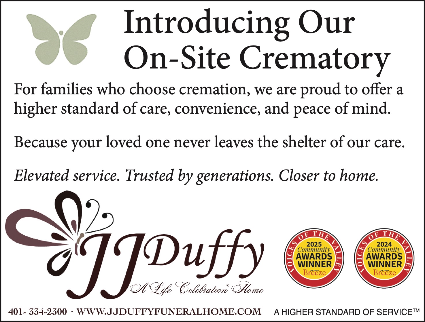 Ad textJJ Duffy Funeral Home Introducing Our On-Site Crematory