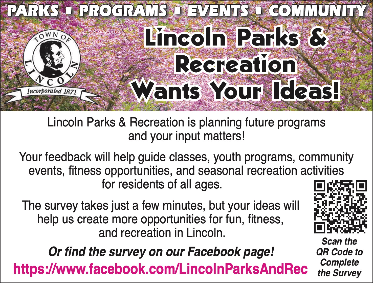 https://www.facebook.com/LincolnParksAndRec Complete the Survey