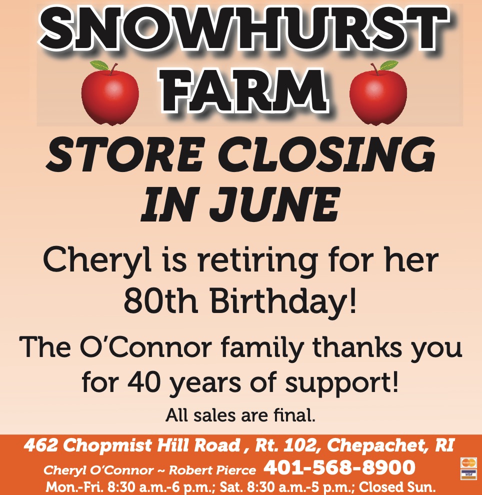 Cheryl OConnor ~ Robert Pierce 401-568-8900 Mon.-Fri. 8:30 a.m.-6 p.m.; Sat. 8:30 a.m.-5 p.m.; Closed Sun.
