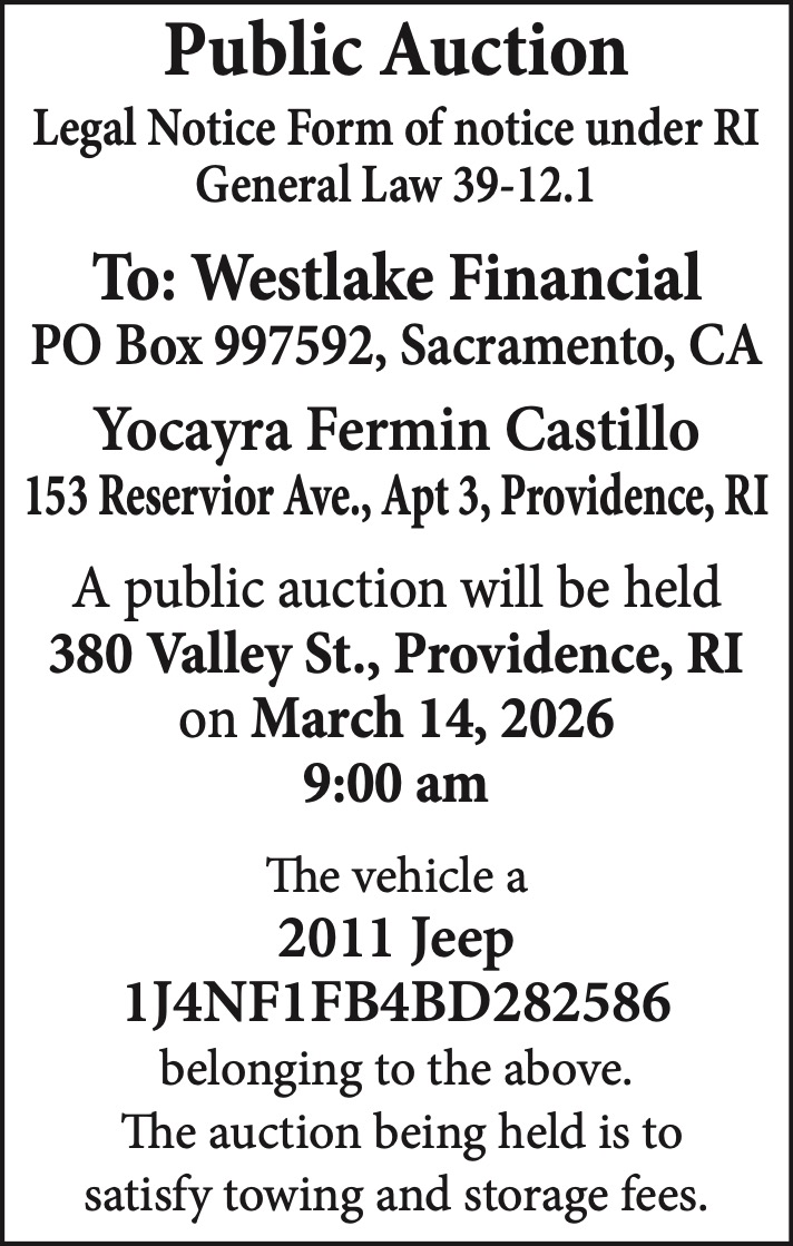 380 Valley St., Providence, RI on March 14, 2026
