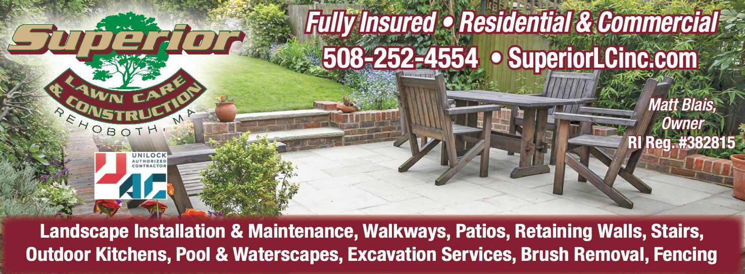 Superior Lawn Care & Construction Fully Insured Residential & Commercial 508-252-4554 SuperiorLCinc.com