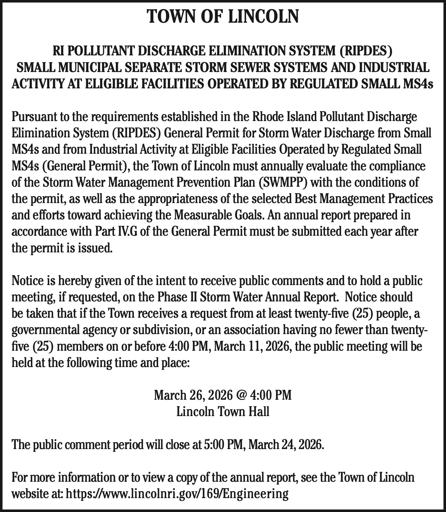 For more information or to view a copy of the annual report, see the Town of Lincoln website at: https://www.lincolnri.gov/169/Engineering