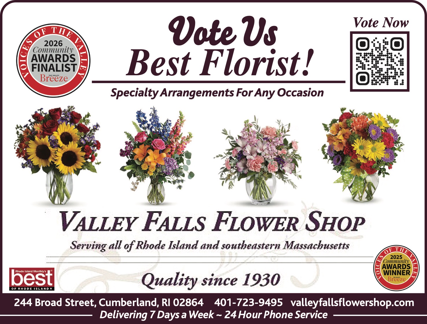 244 Broad Street, Cumberland, RI 02864 401-723-9495 valleyfallsflowershop.com